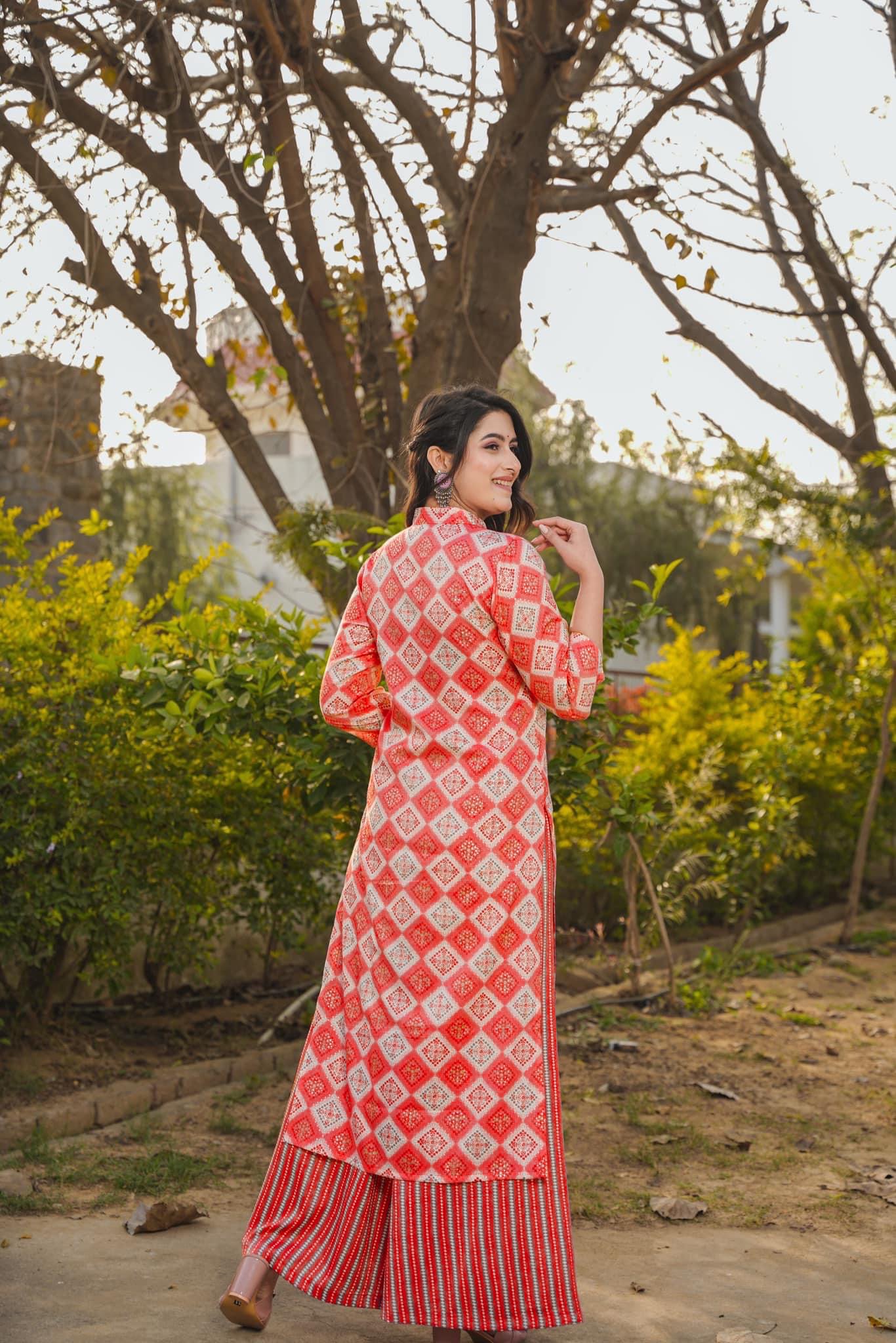 Be the first to review “Woman Red Printed Rayon Kurta & Pant Set”
