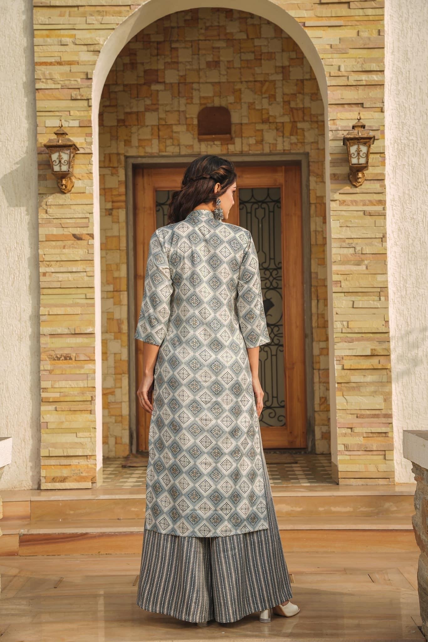 Woman Grey Printed Rayon Kurta & Pant Set